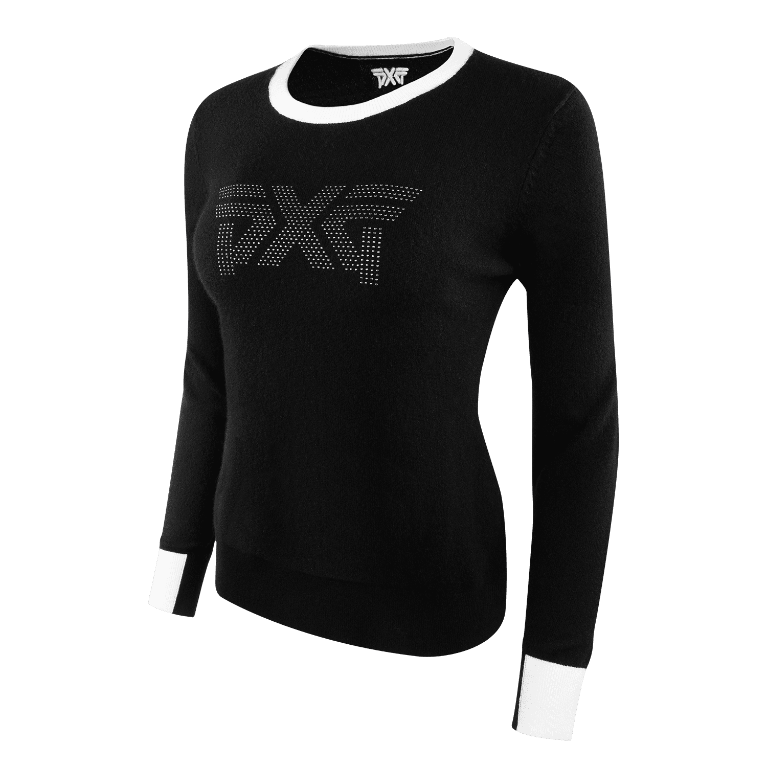 This PXG Cashmere Crew Neck Sweater is one of my favorite pieces from our PXG Fall/ Winter Collection. It is 100% cashmere, making it cozy, warm and an uber-soft. with a subtle gray rhinestone logo for a delicate touch of glam. Its white color block collar and wrist detailing also stays true to the PXG monochrome color palette.